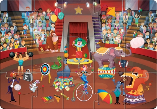 Puzzle din 15 piese cu litere, cuvinte si imagini litera i desene de colorat.